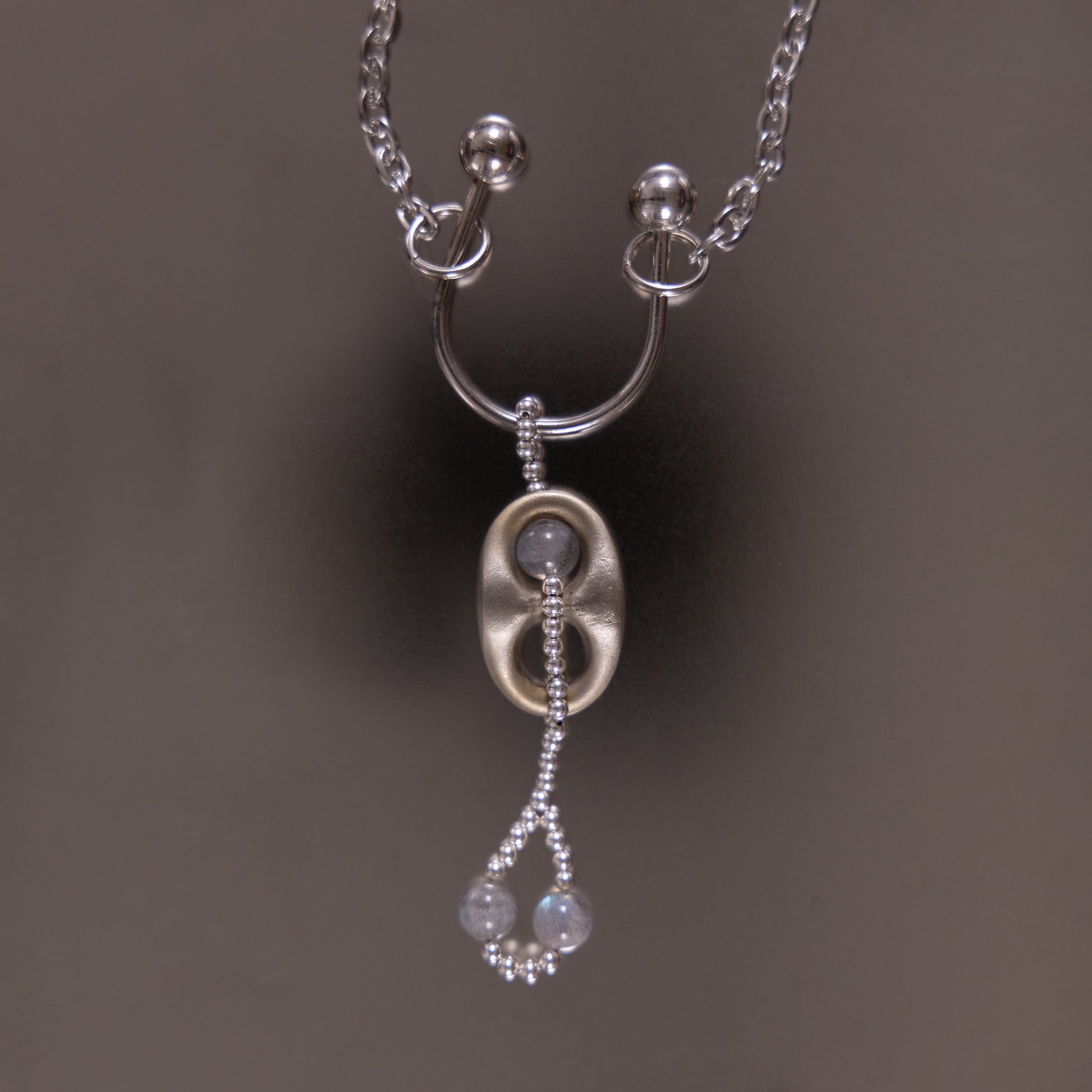 stainless steel, white bronze, silver beads, labradorite.