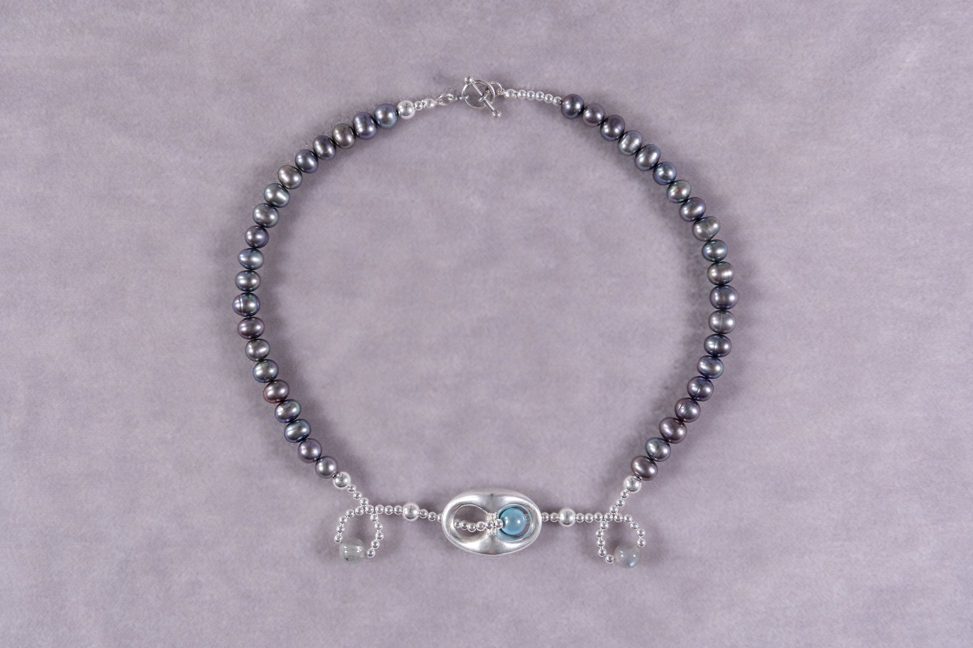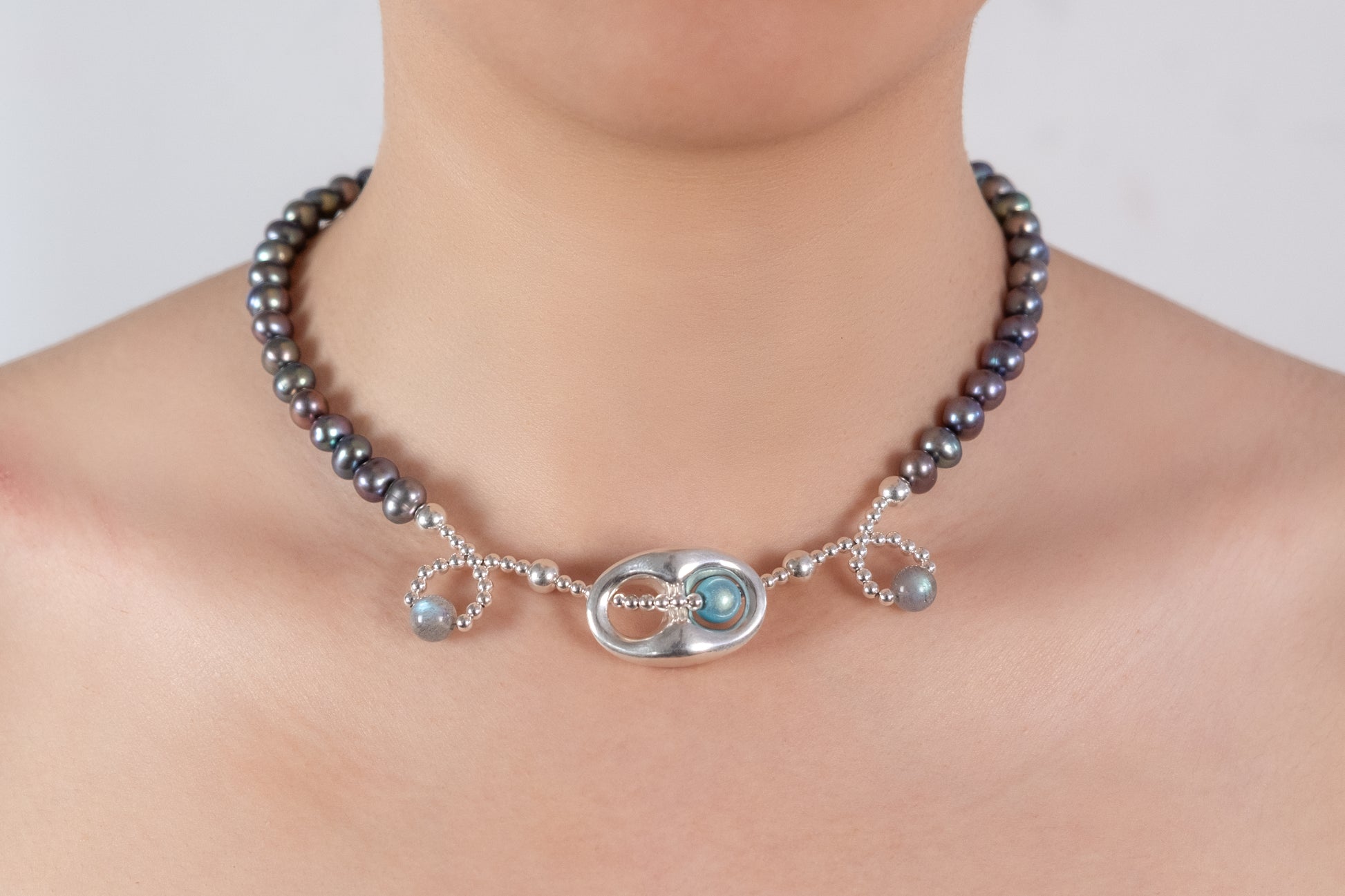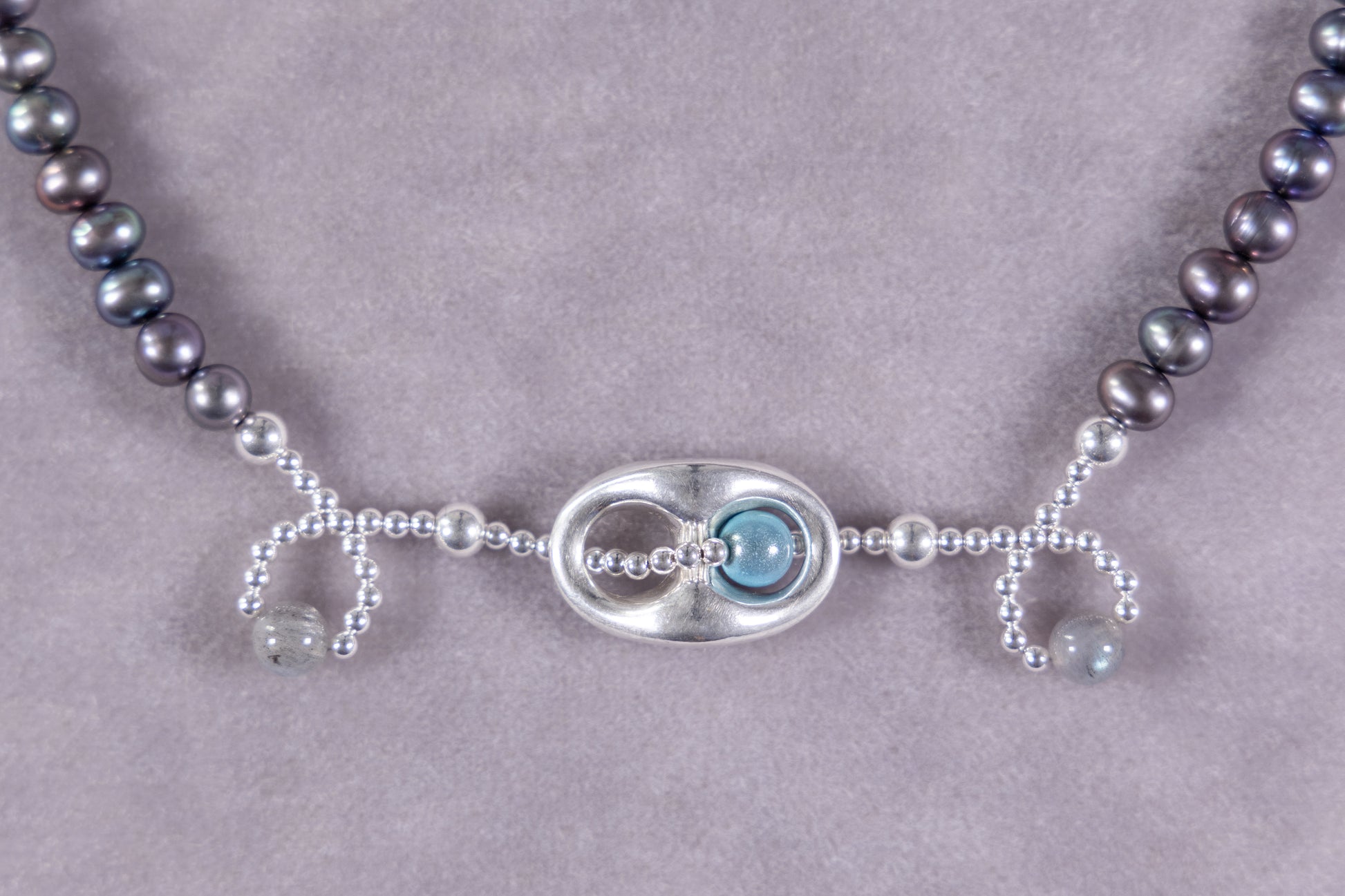 silver, cultured pearls, labradorite.